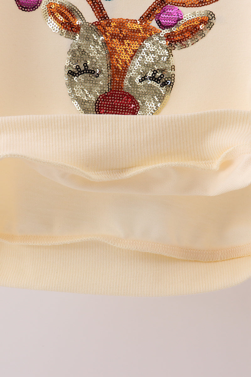 Get cozy and festive with our beige reindeer sequin Mom & Me sweatshirt! This playful set sparkles with charming sequin reindeer designs, perfect for twinning with your little one during holiday fun. Soft, comfy fabric keeps you warm while adding a touch of sparkle to your seasonal style. Celebrate the season in matching fashion that's as joyful as your bond!