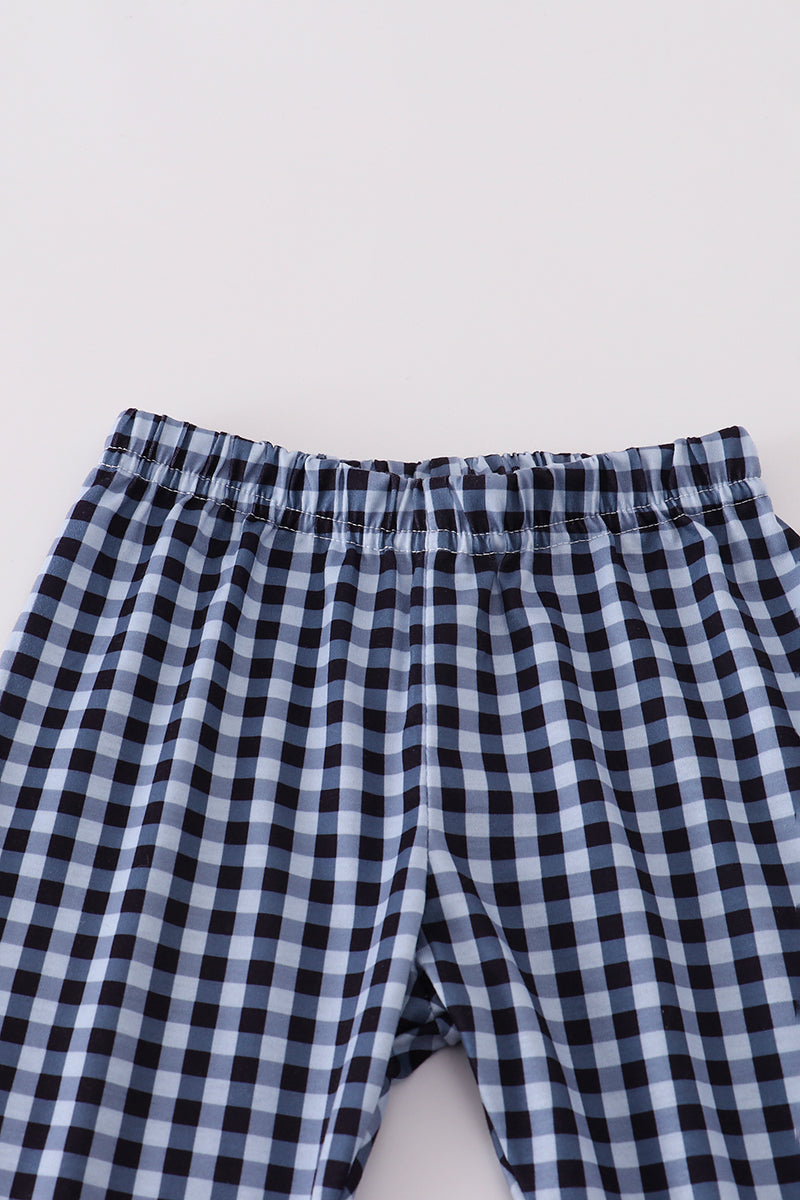 Blue believe embroidery ruffle pants set
