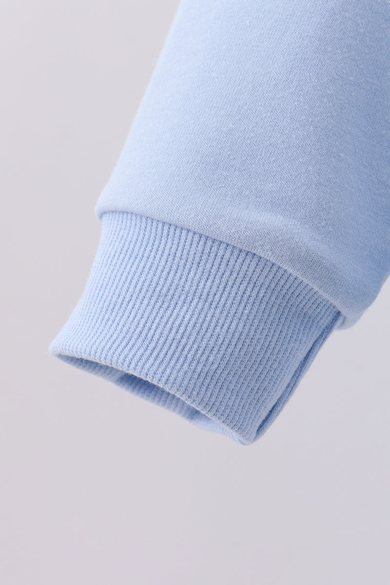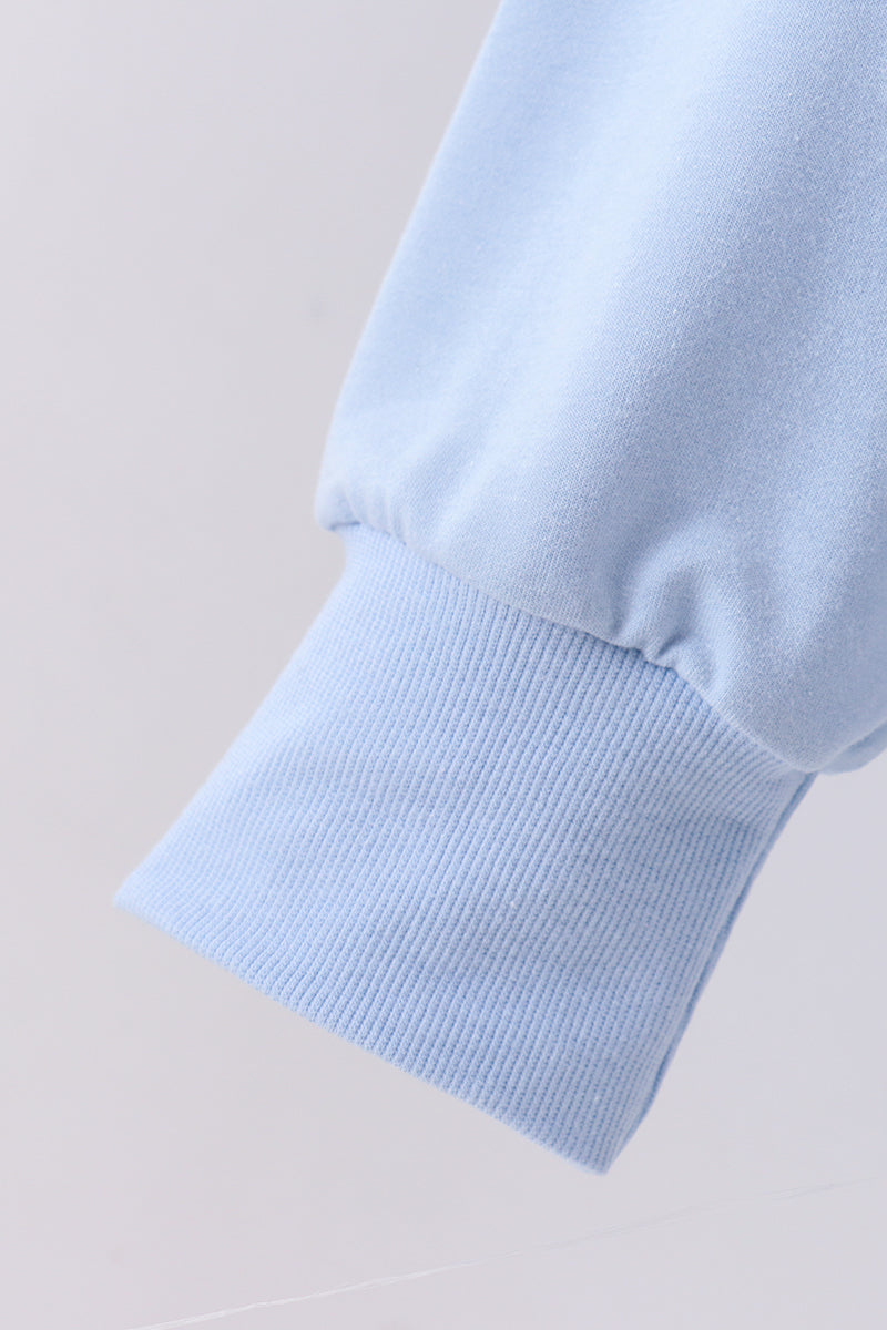 Celebrate your bond in matching style with this charming blue patriotic sweatshirt, perfect for mom-and-me moments. Each piece features a hand-sewn bow detail that adds a touch of whimsy and personality. Crafted with care, this cozy sweatshirt combines patriotic flair with playful elegance—ideal for creating coordinated looks that show off your special connection. Whether you're heading out for a casual day or snapping coordinating photos, this sweet duo essential brings comfort and coordinated cuteness to your wardrobe.