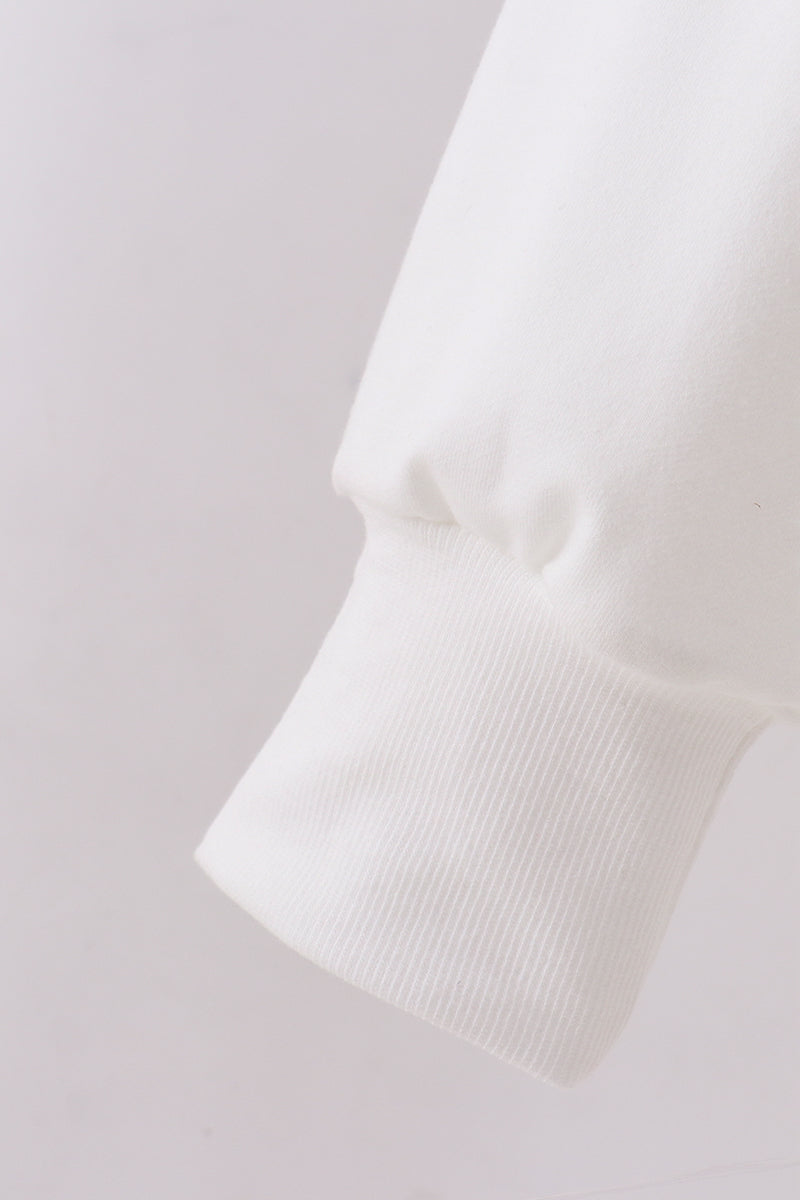 Celebrate togetherness in matching style with this charming cream sweatshirt, perfect for you and your little one. Hand-sewn patriotic details and a delicate bow accent add personality and warmth to your coordinated look. Crafted for comfort, this mom&me piece brings joy to everyday moments while keeping both of you cozy. A sweet way to show your bond through fashion.