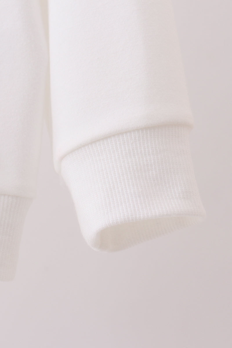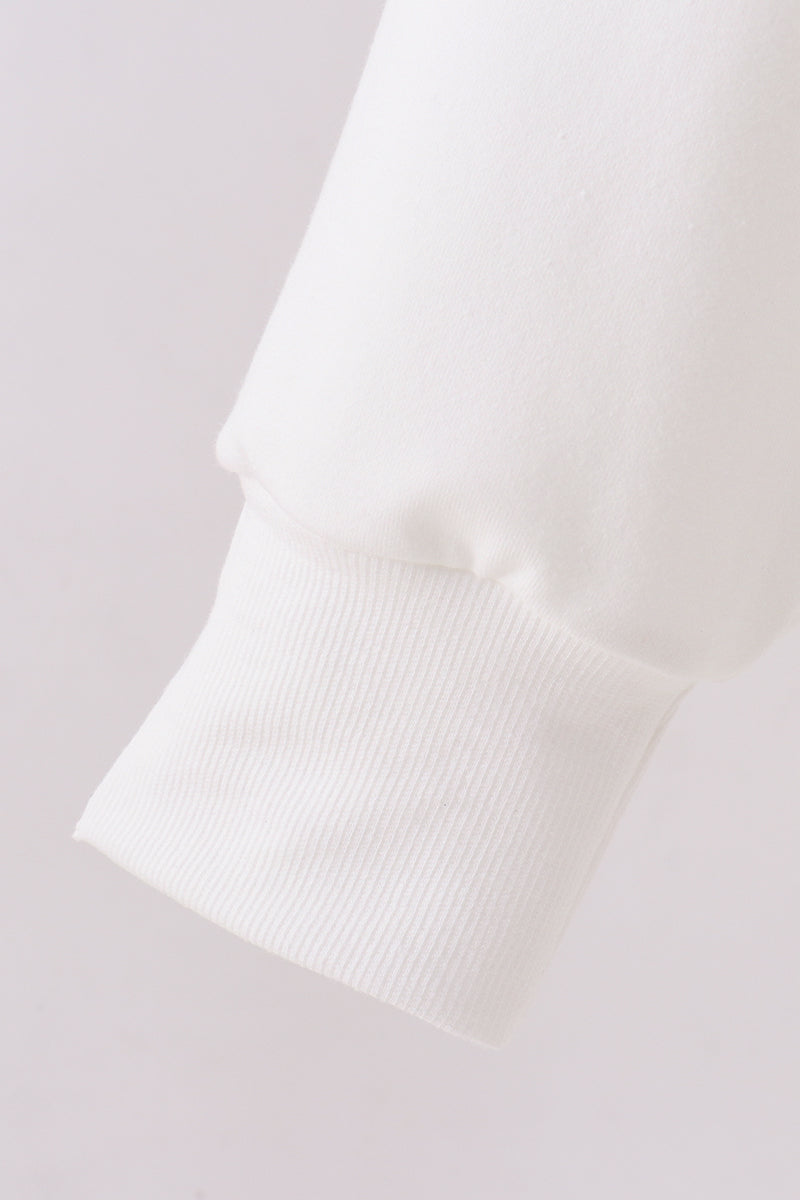 Celebrate your bond in matching style with this charming cream sweatshirt, perfect for mom-and-me moments. Each piece features a hand-sewn patriotic bow detail that adds a touch of whimsy and personality. Crafted with comfort in mind, this cozy sweatshirt is ideal for casual outings, family photos, or just snuggling up together. The soft, neutral cream tone pairs effortlessly with any outfit, while the patriotic accent brings a fun, festive flair. Create coordinating looks that show off your special connection!