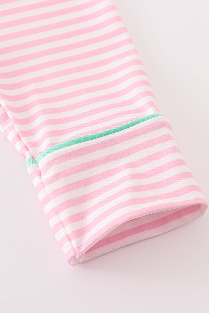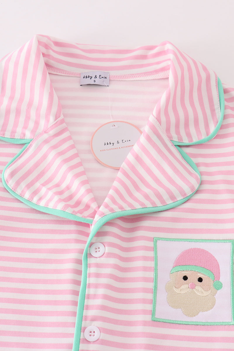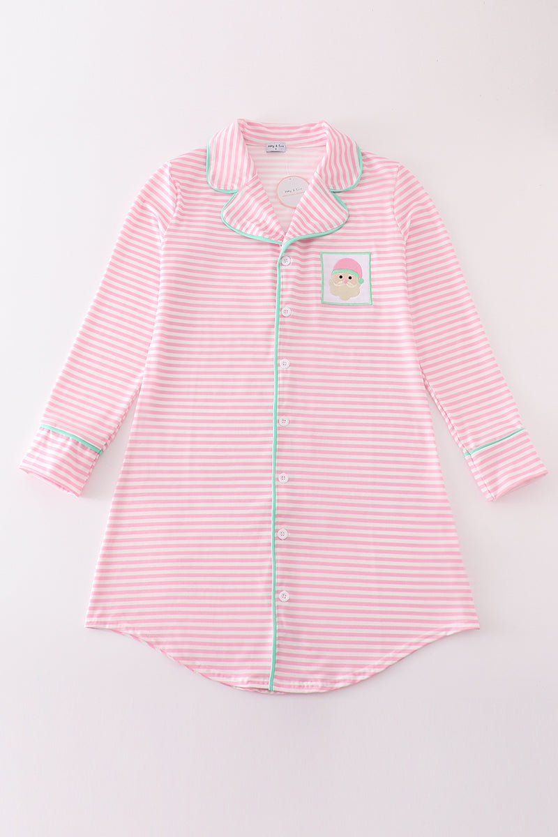 Get festive with our Pink Stripe Christmas Santa Claus Embroidery Women Gown! This quirky and playful piece will make you stand out during the holidays. Perfect for a fun and unique look, it features a cute Santa Claus embroidery and trendy pink stripes. Celebrate in style with this must-have gown!