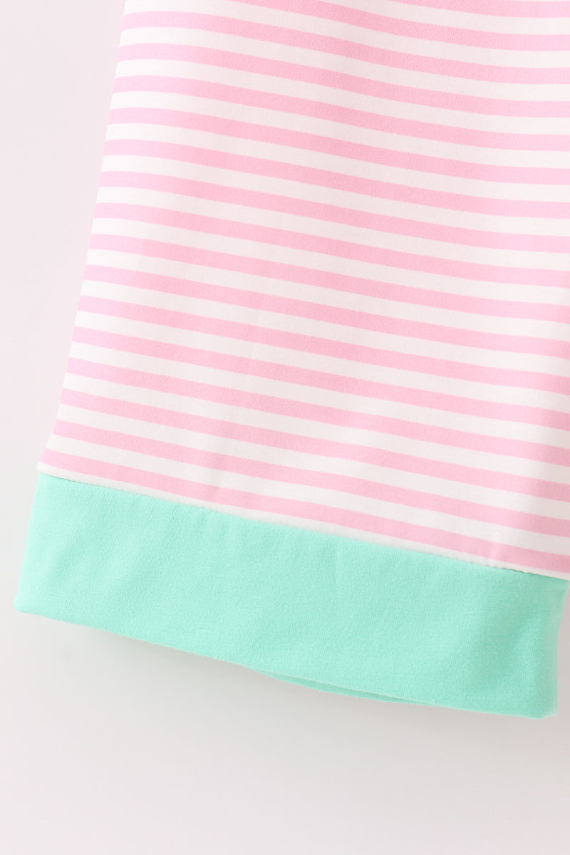 Pink stripe christmas santa claus embroidery women pajamas pants