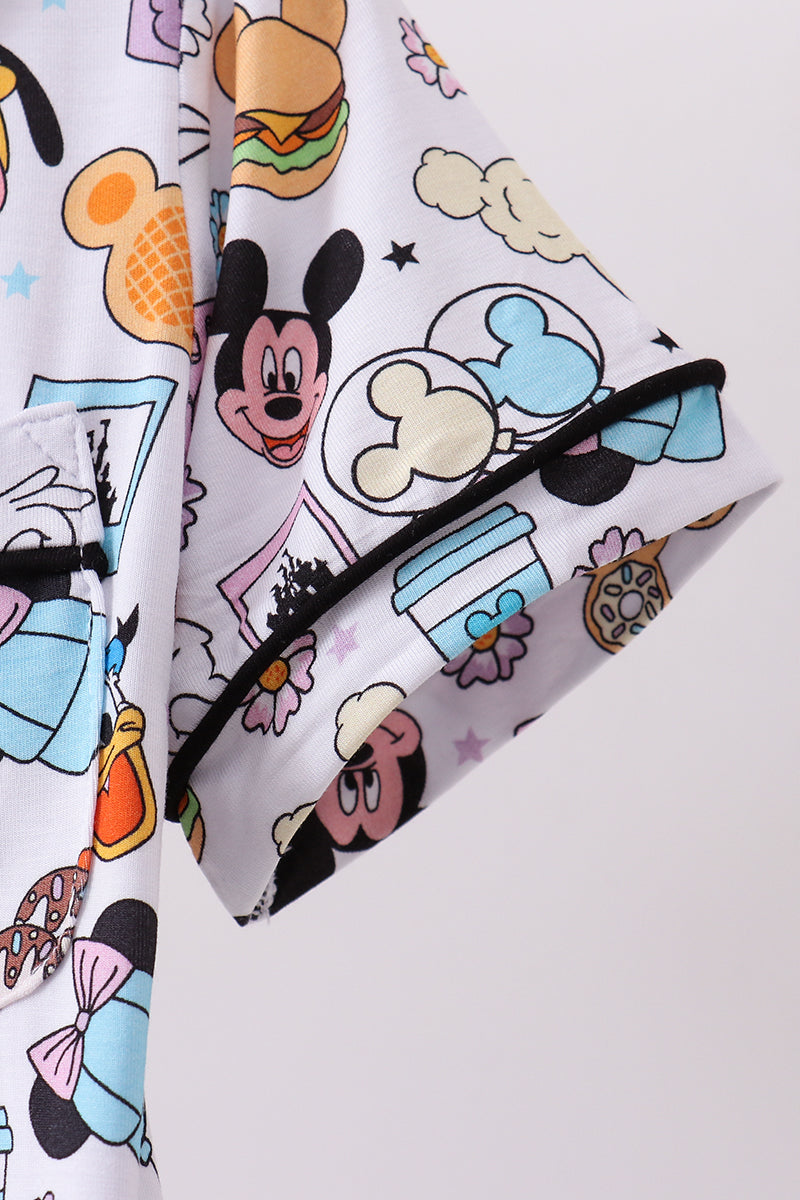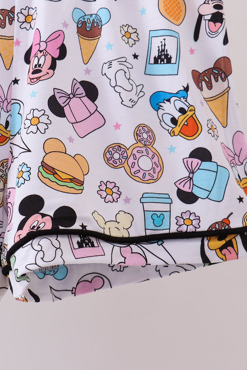 Purple character print bamboo pajama set