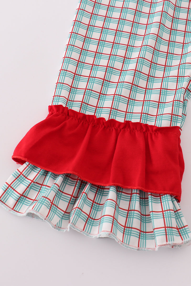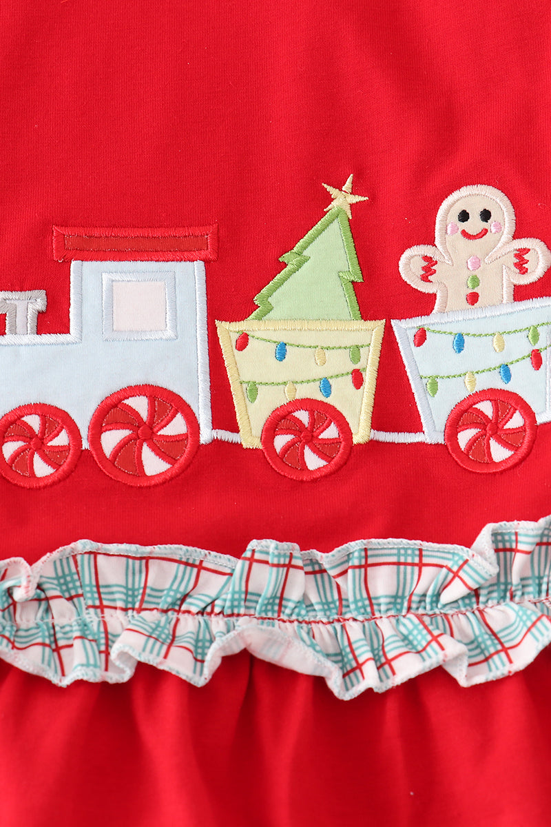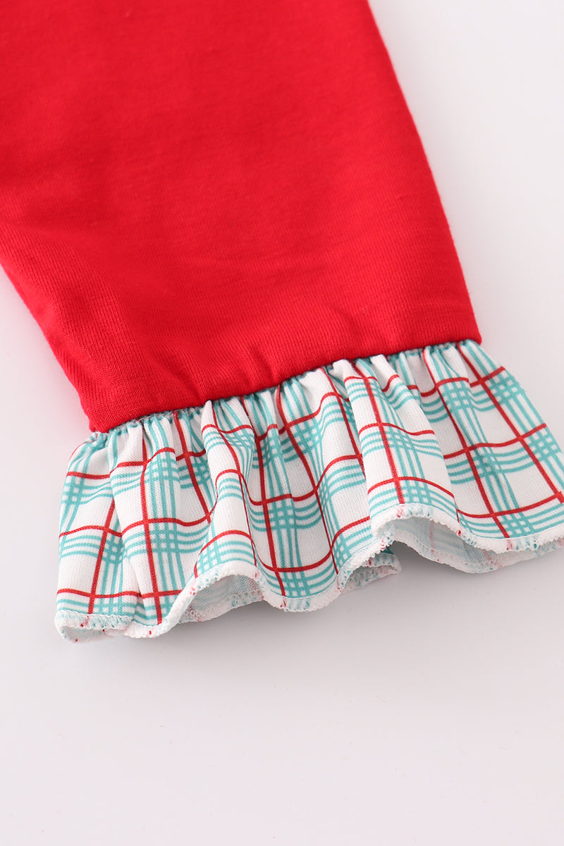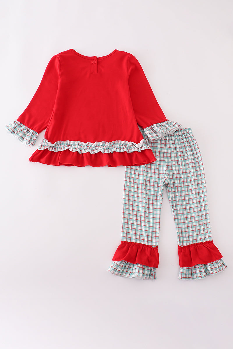 Bring festive cheer to any occasion with this Red Gingerbread Applique Ruffle Pants Set. Featuring charming gingerbread appliques and playful ruffle details, it combines comfort with holiday whimsy. Perfect for lively celebrations or cozy winter days, this set adds a fun, spirited touch to your wardrobe.